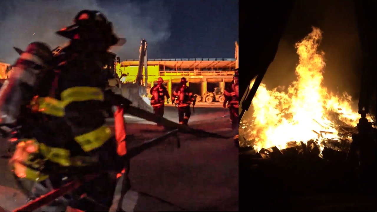 D-6 3 Tower Ladders in Opp, 3 hand lines, trucks opening up @21:29