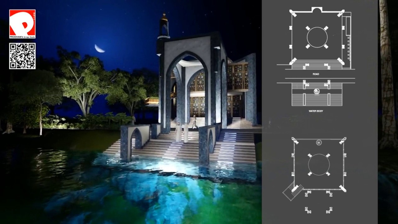 Muslim prayer hall 'Kharashar Masjid' (Mosque) striking structure with a purpose to make such a space where a person can connect their own selves to pray to Allah! It gives spiritual feelings when the light beams come through the decorative glass facades & glass dome! Which also connects Masjids Inside to mighty Nature, proposes transparency towards the WORLD!