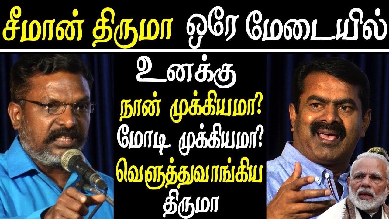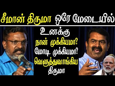 seeman vs thirumavalavan who is your enemy modi or thirumavalavan thirumavalavan ask seeman while speaking at a book launch event vck leader thirumavalavan appealed that all the tamil forces should be united forgetting the difference between us, he also said that sanadhan forces like sangh parivar rss are our biggest challenges and we should not criticize among ourself and weaken the friendly forces here is the latest speech of thirumavalavan advising seeman